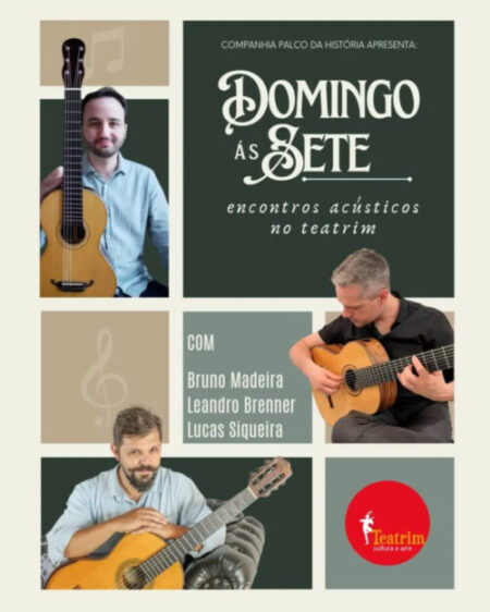 Em domingos reservados à música, o Teatrim abre suas portas sempre às 19h para receber um evento de caráter acústico, com curadoria e direção musical de Lucas Siqueira.