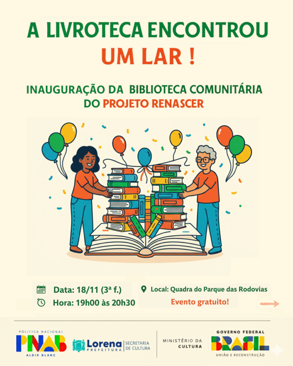 Convidamos todos para a Inauguração oficial! A nossa biblioteca, que rodou a cidade, será doada e ficará fixa na Quadra do Parque das Rodovias para o @projetorenascerlorena, sob os cuidados do ...